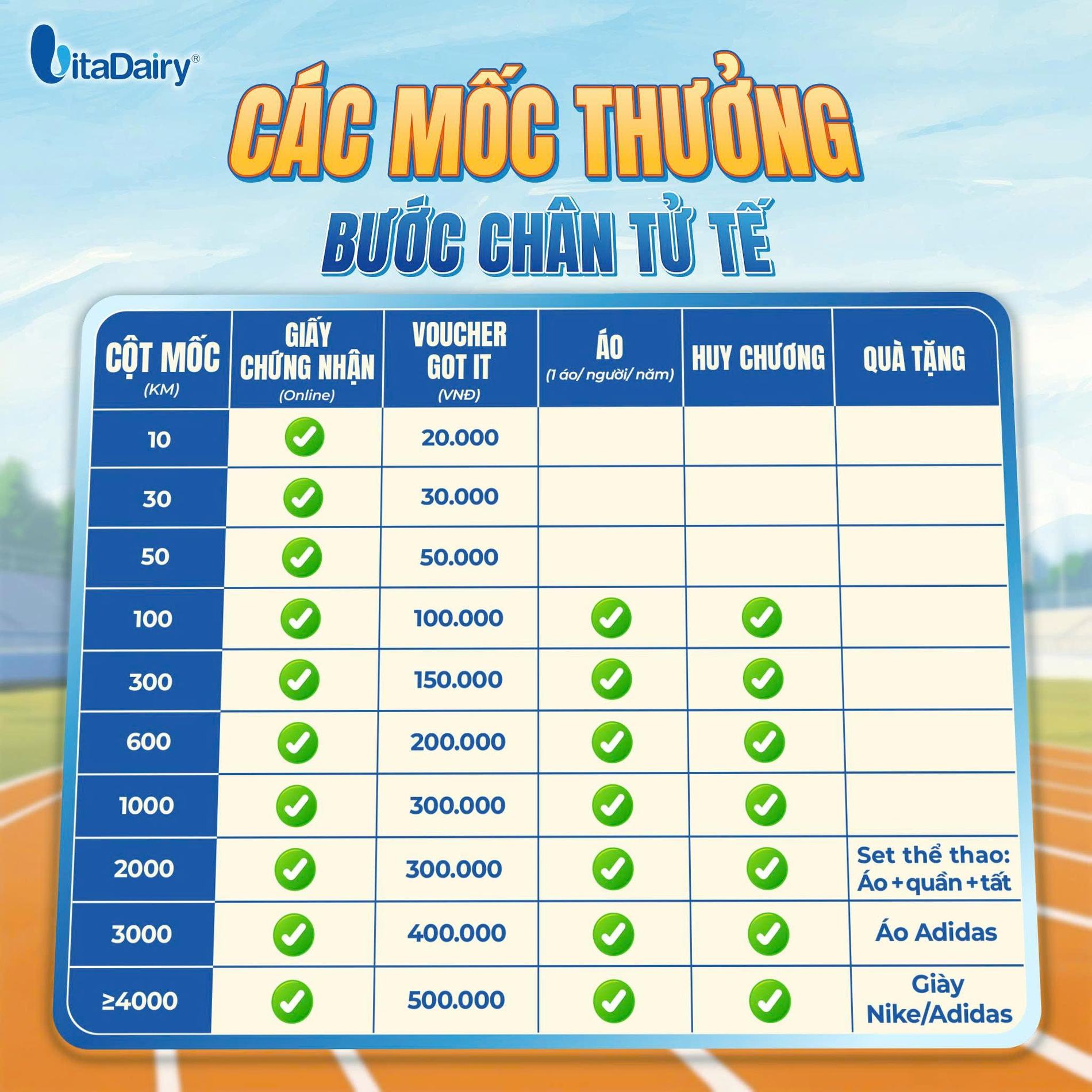 1. Đạt 30km toàn kỳ sẽ nhận giấy chứng nhận hoàn thành.