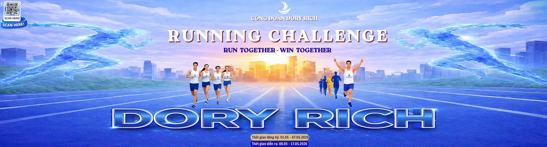 Hướng tới chào mừng ngày Giải Phóng Miền Nam 30/4 - Quốc Tế Lao Động 1/5, Công đoàn Dory Rich phát động giải chạy bộ Dory Rich Running Challenge – Mùa 2 với Slogan “ Run Together – Win Together”. Giải chạy nhằm lan tỏa tinh thần thể dục thể thao, nâng cao sức khỏe, giúp nhân viên giải tỏa căng sau những giờ làm việc vất và gắn kết hơn nữa tình đồng đội - đồng nghiệp.