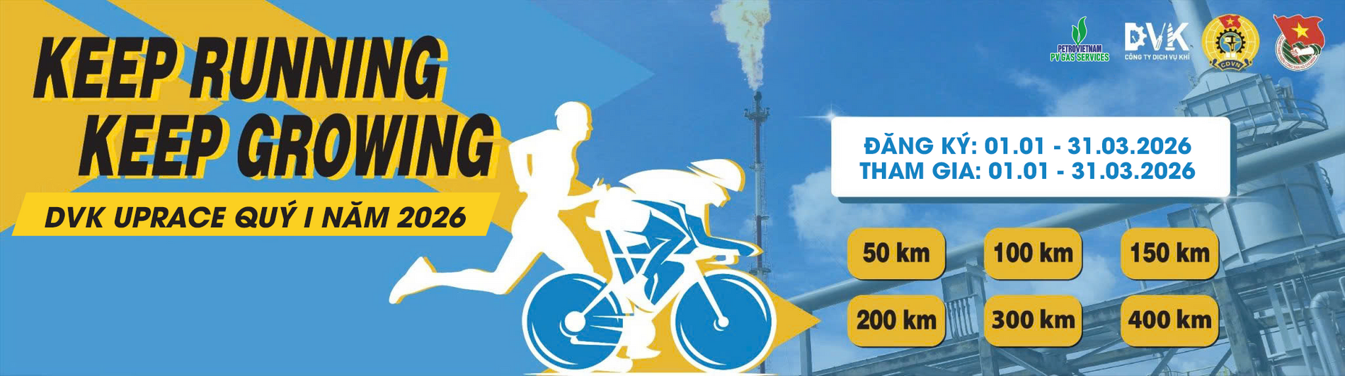 Nhằm tạo sân chơi lành mạnh, bổ ích, kết nối tất cả các thành viên đang làm việc trong công ty Dịch Vụ Khí ở các khu vực Thái Bình, Cà Mau và Bà Rịa Vũng Tàu, đồng thời thúc đẩy tinh thần tự giác, từng bước hình thành thói quen rèn luyện thể thao nâng cao sức khỏe, thể chất trong toàn thể người lao động. Công đoàn và Đoàn thanh niên công ty tổ chức Giải DVK Uprace 2026 bao gồm các hoạt động: đi bộ, chạy bộ, đạp xe, với slogan “Keep Running, Keep Growing”. Hoạt động sẽ được tổ chức định kỳ hàng quý và qua đó BTC muốn gửi đến mọi người thông điệp hãy luôn duy trì thể thao lành mạnh để cải thiện sức khỏe của mình.