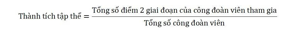 2. Giải tập thể: Dành cho Tổ Công đoàn/ Công đoàn bộ phận có thành tích tập thể cao. Được tính như sau: